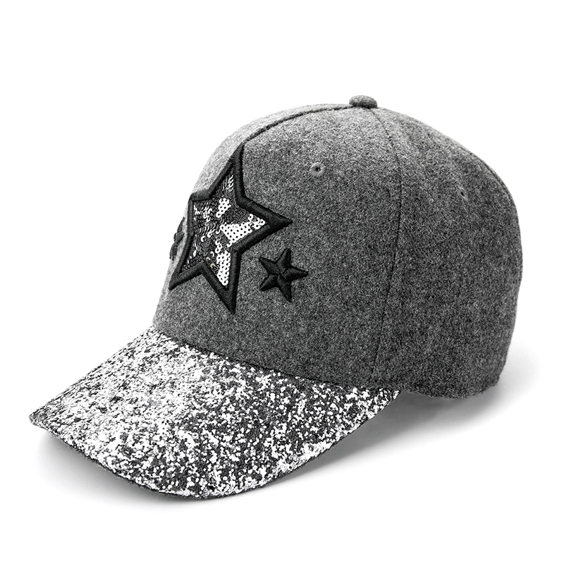 韓版刺繡硬頂高頂百搭氣質(zhì)鴨舌帽大帽檐日常羊毛混紡星星