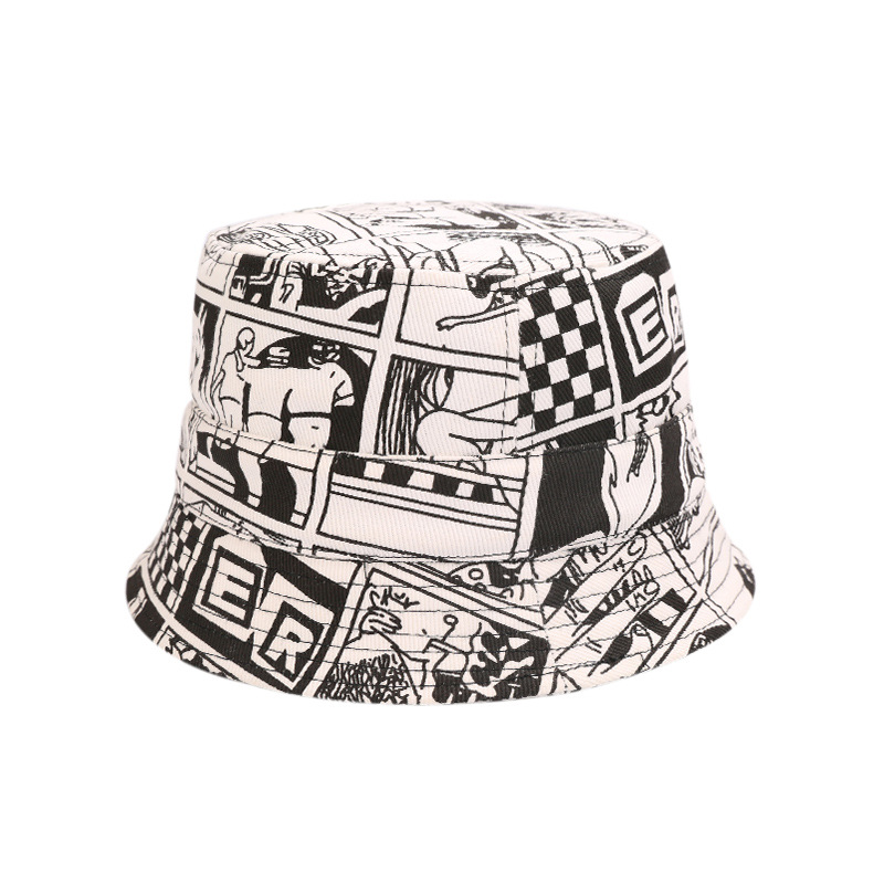春夏漁夫帽女韓版潮流時尚印花盆帽嘻哈遮陽帽水桶帽定制百搭