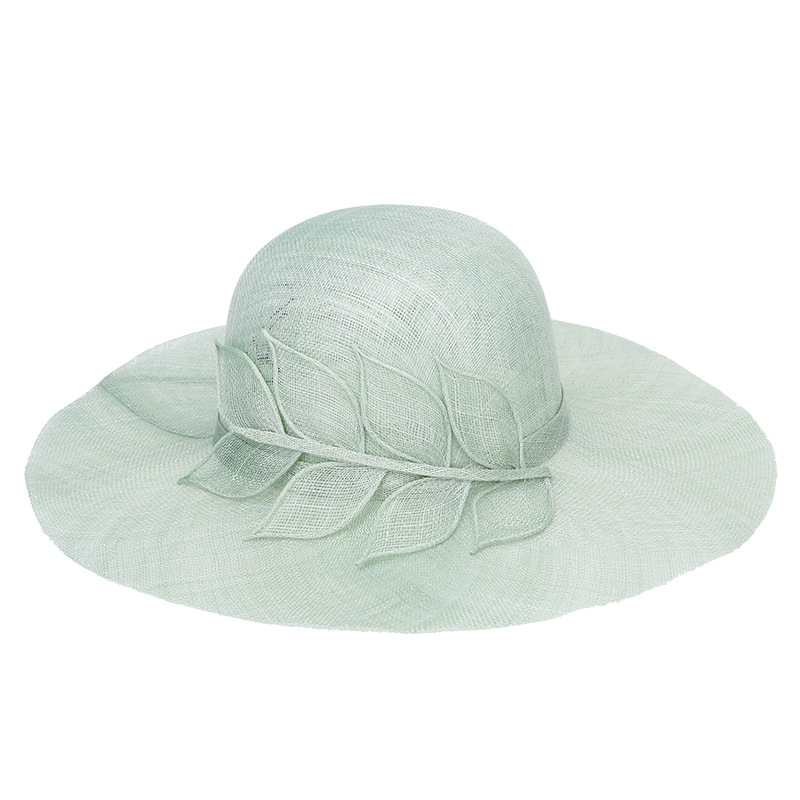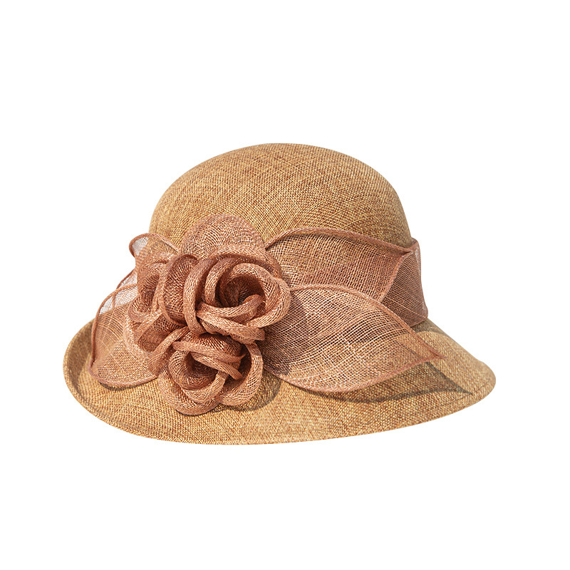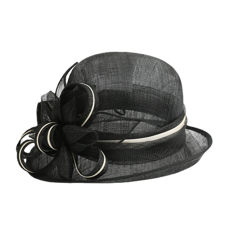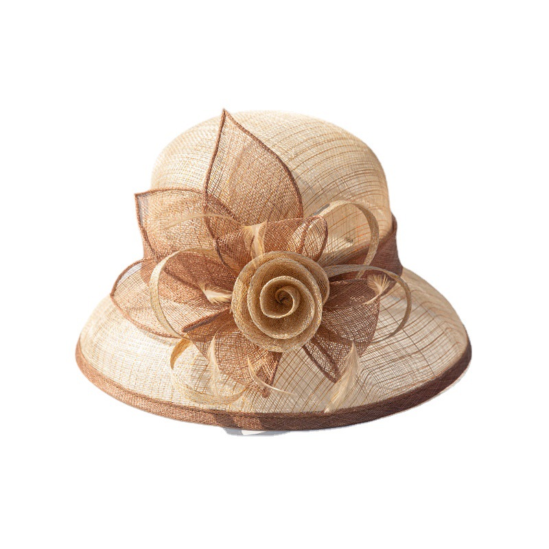 春夏新款麻紗帽圓頂寬檐淑女時(shí)尚百搭女花飾赫本風(fēng)透氣