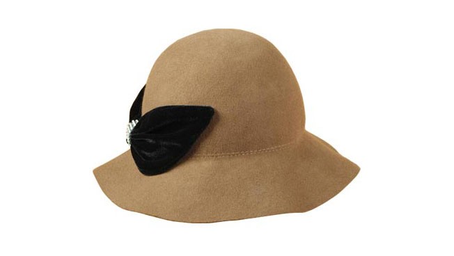 100%純羊毛的帽子,溫暖的駝色,簡約的造型,配以一只黑色大蝴蝶結(jié),時尚而別致。漁夫帽,盆帽。